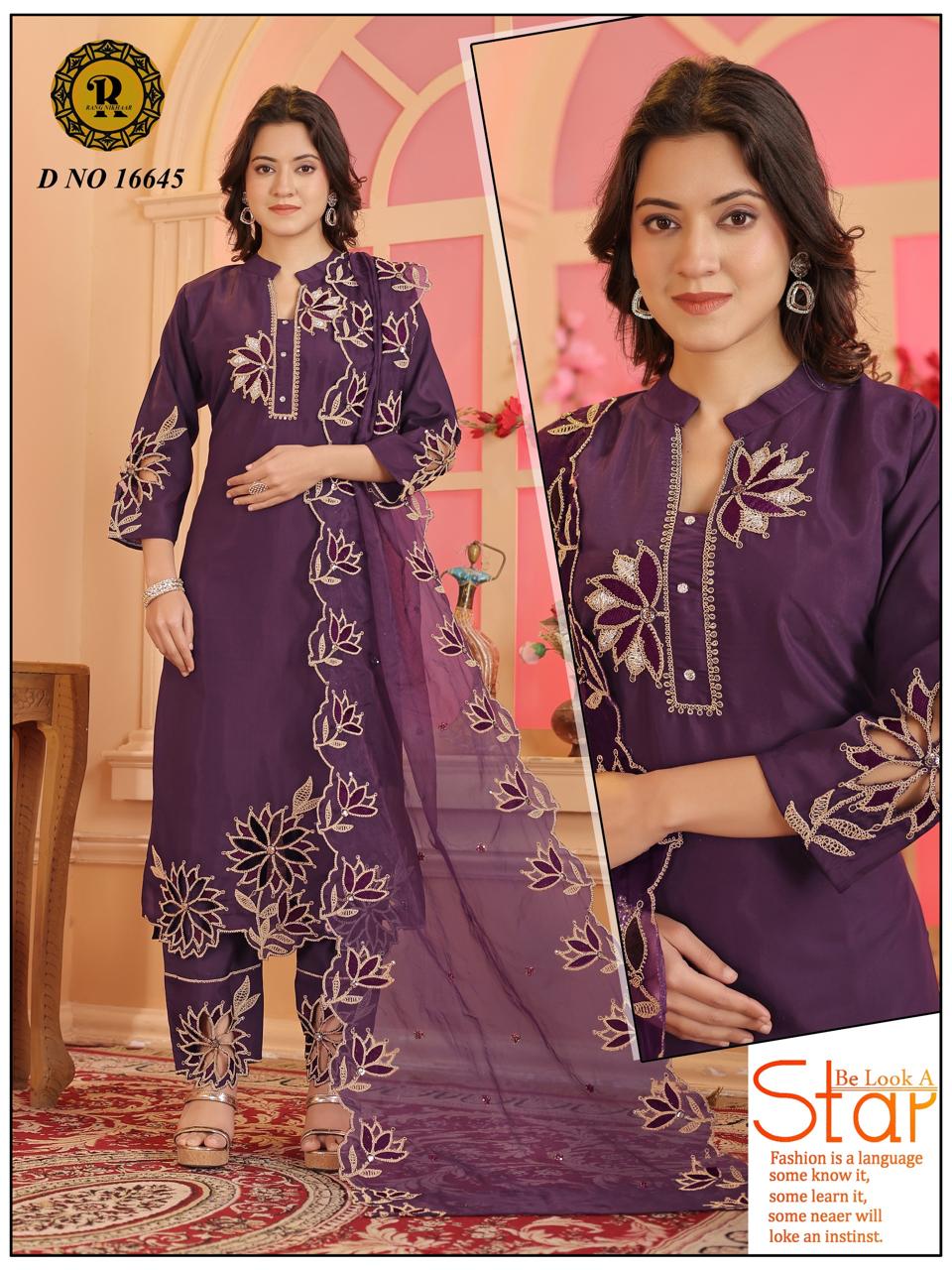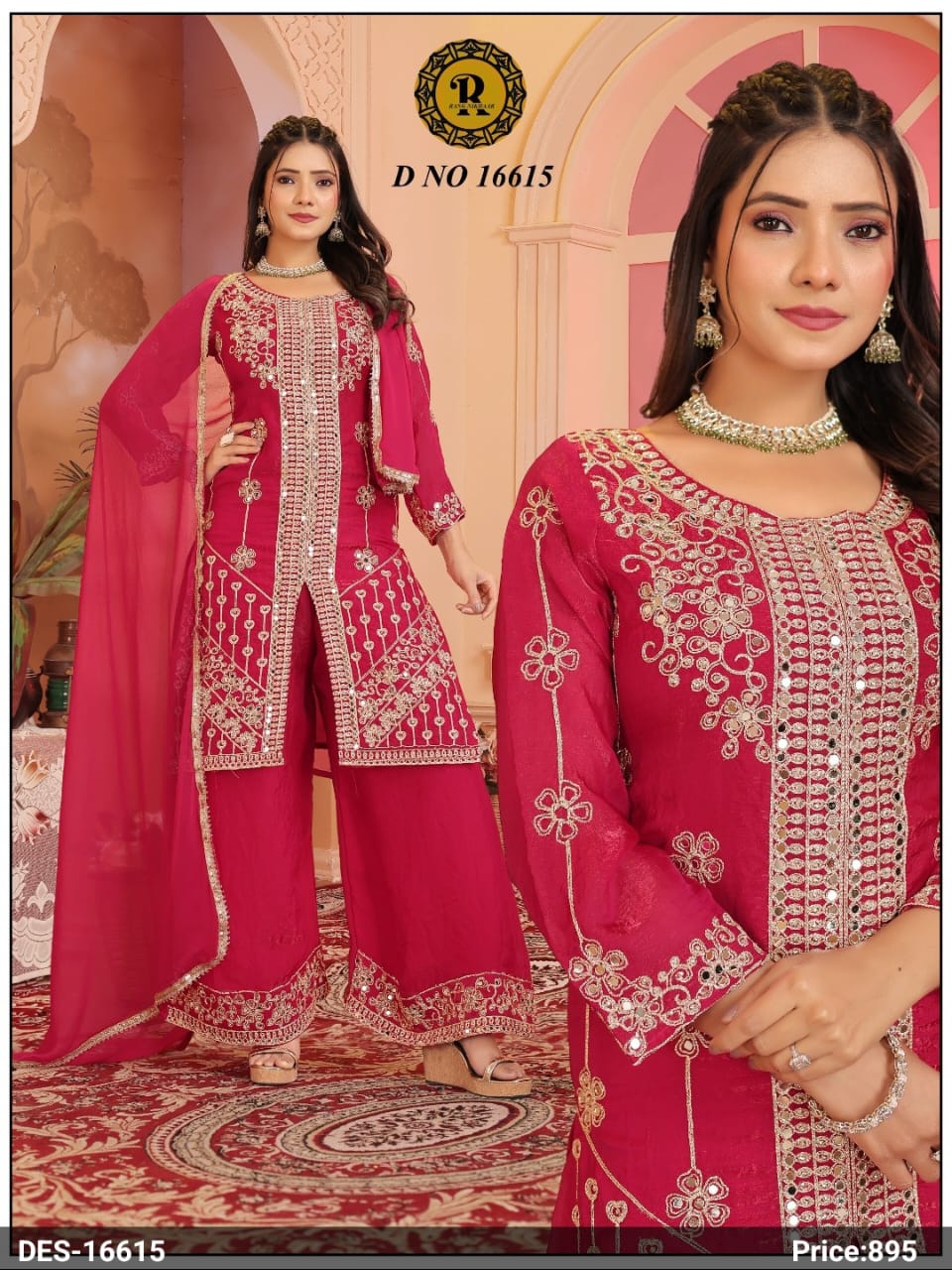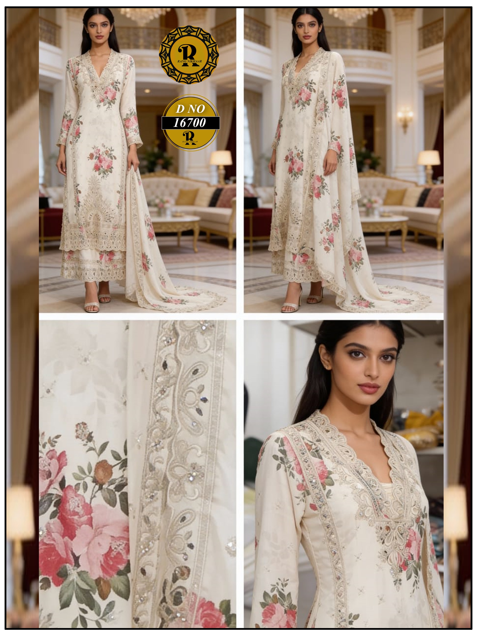 Our collection includes a wide range of Poshak dresses, embroidered suit sets, festive wear, party wear outfits, and designer three-piece sets crafted with rich fabrics, detailed embroidery, and elegant finishing.